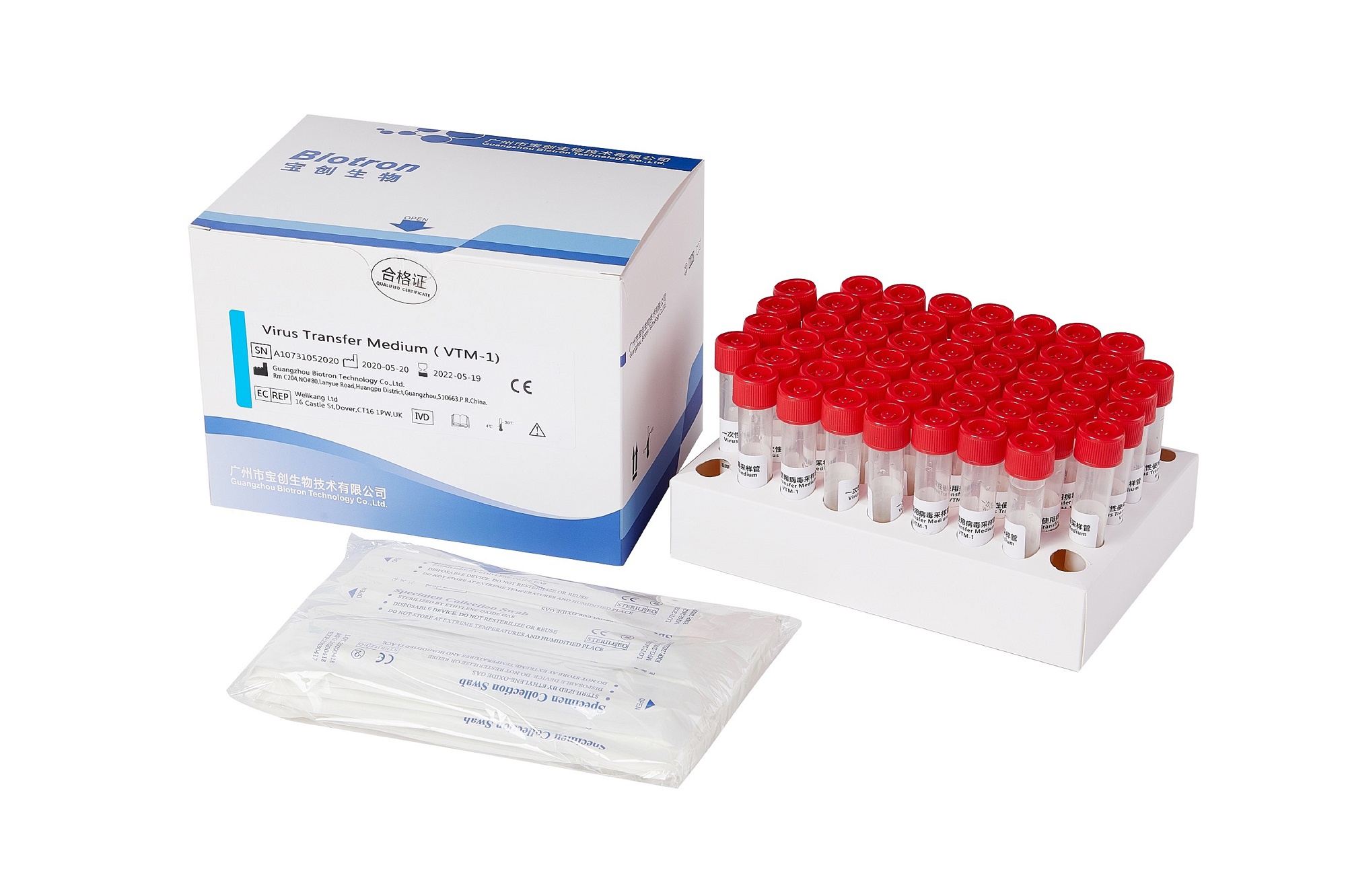 VTM tube with different types of swabs, easy to use