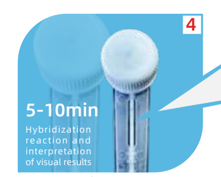 and the released amplification product hybridizes with the probe on the membrane strip and fixes it. Make a qualitative interpretation by the presence or absence of blue bands.