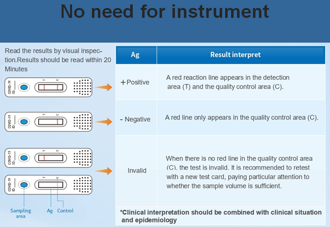 COVID-19 Ag Rapid Test Kit is used for clinical in vitro qualitative detection of novel coronavirus antigens in human throat swabs and other in vitro samples.